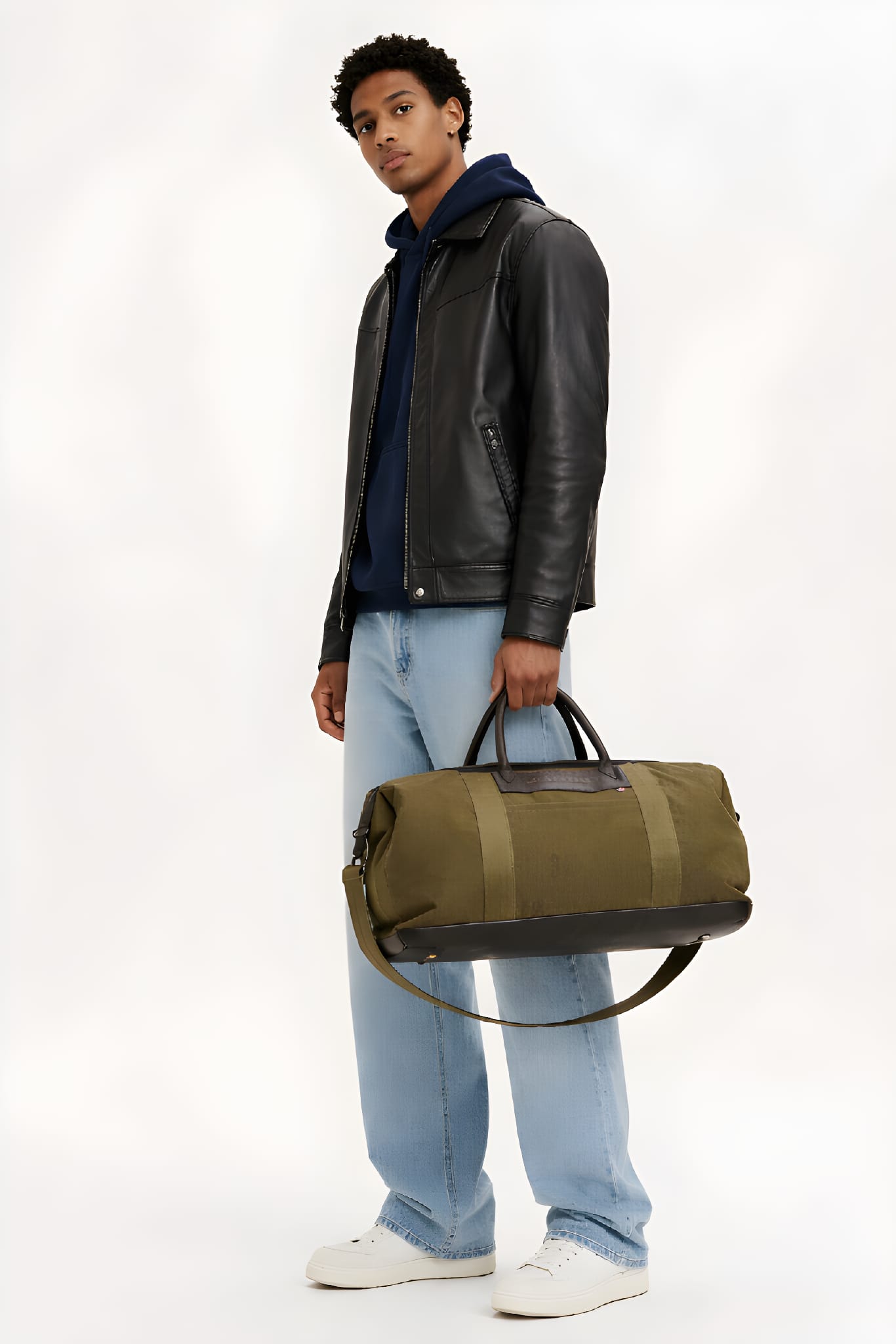 Le concept d'upcycling militaire est au cœur de notre processus de création. Nous sélectionnons avec le plus grand soin des textiles et des cuirs militaires authentiques, reconnus pour leur résistance et leur caractère.